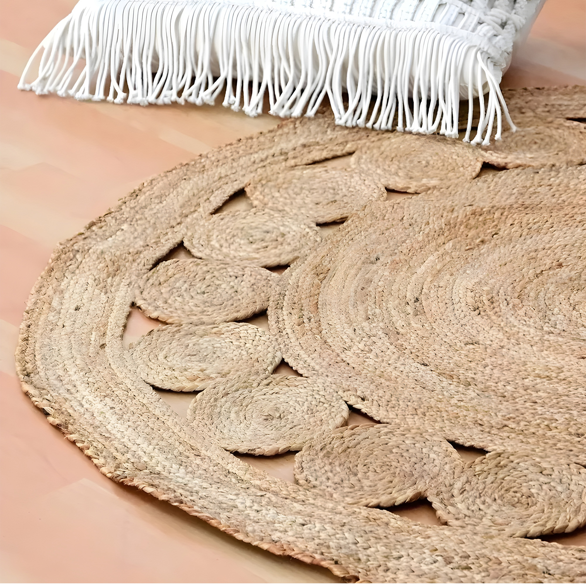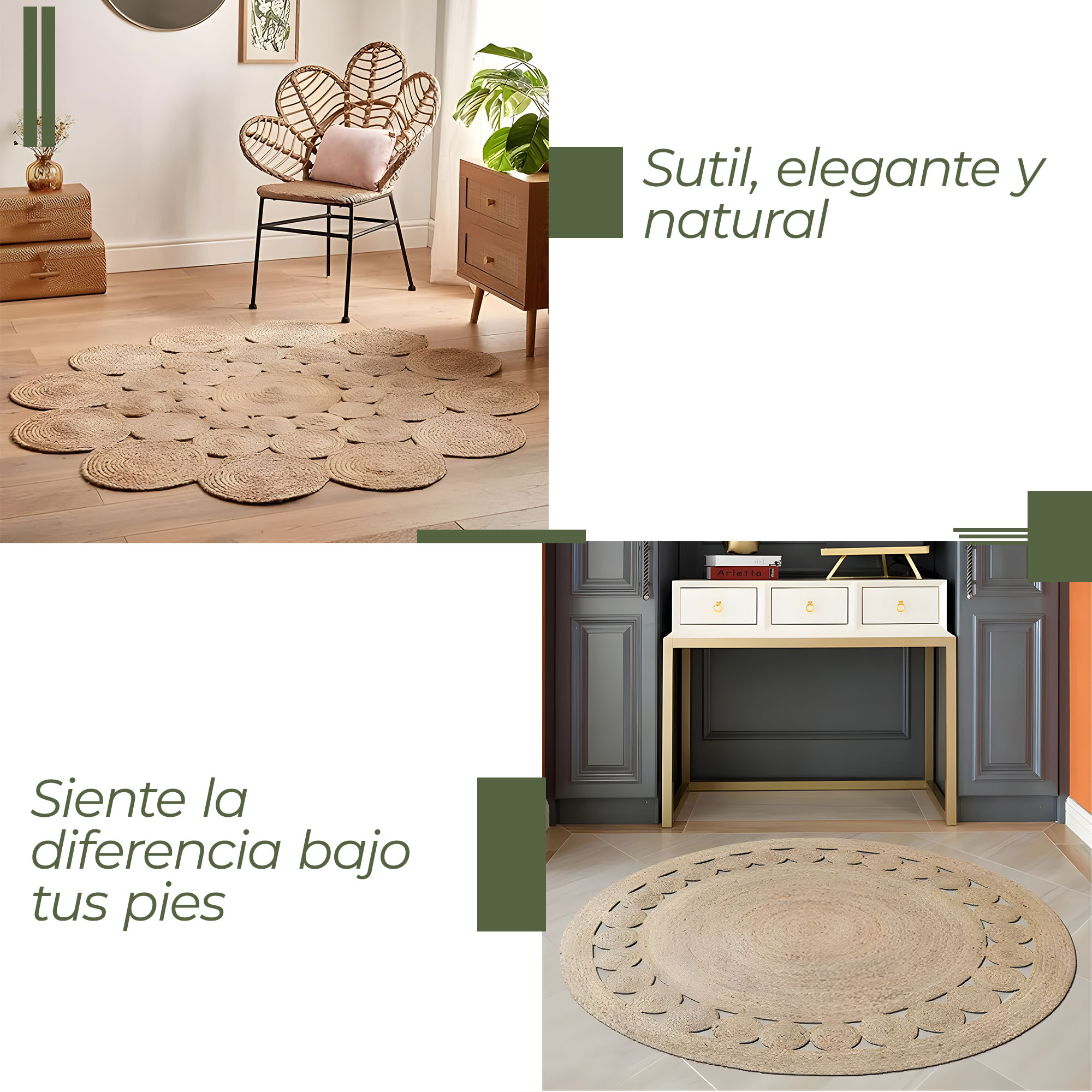 Alfombra Yute Redonda Hogar Decoración Fibra 120 Cm