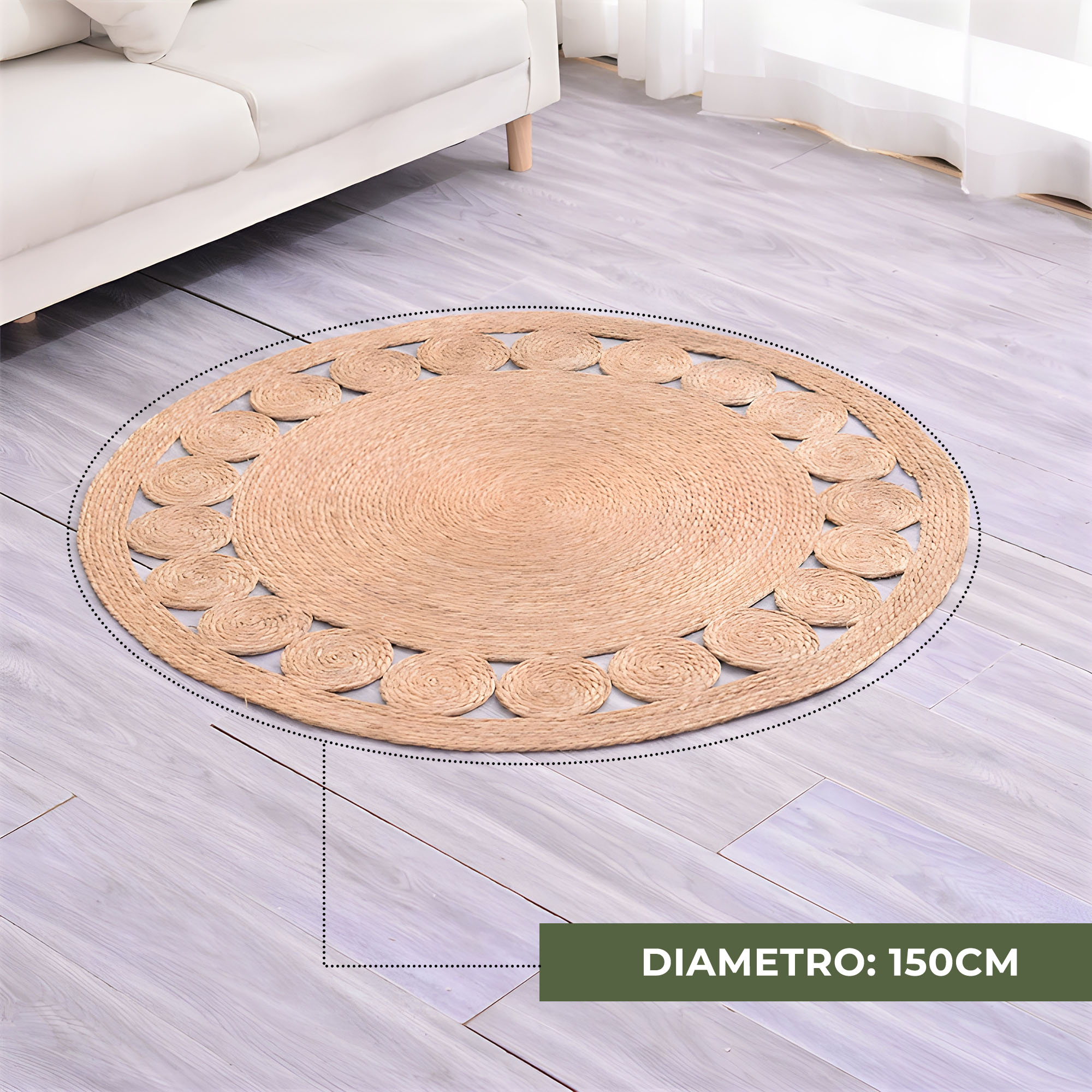 Alfombra Redonda Tejida a Mano Hogar Yute 150 CM Beige