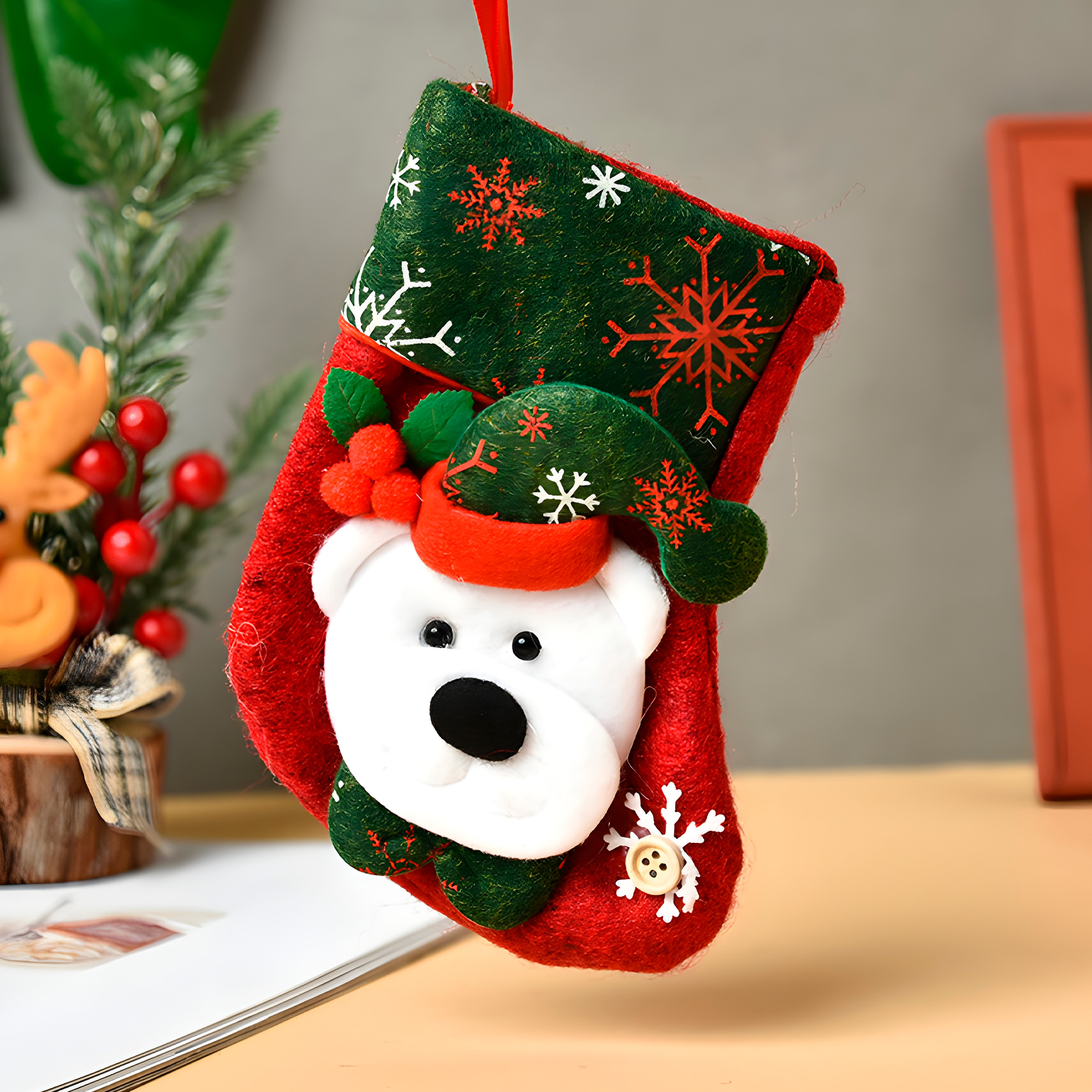 Disponibles en varias figuras festivas como Viejito Pascuero, reno, oso y muñecos de nieve, estos calcetines se adaptan fácilmente a distintos estilos decorativos. Ya sea en casas, bares, restaurantes o incluso oficinas, aportan un ambiente alegre y lleno de espíritu navideño.