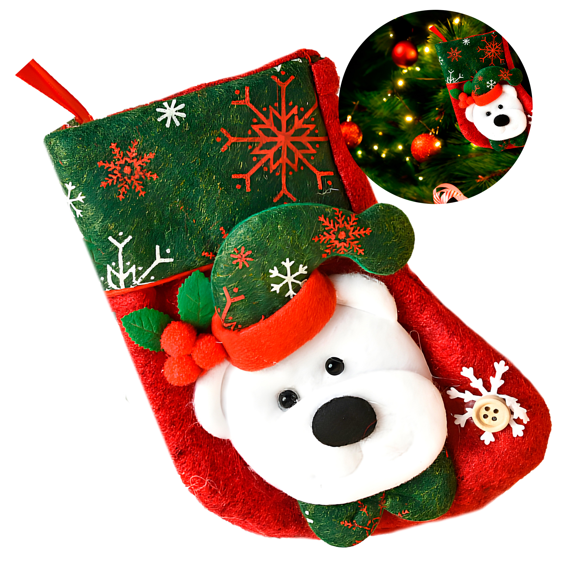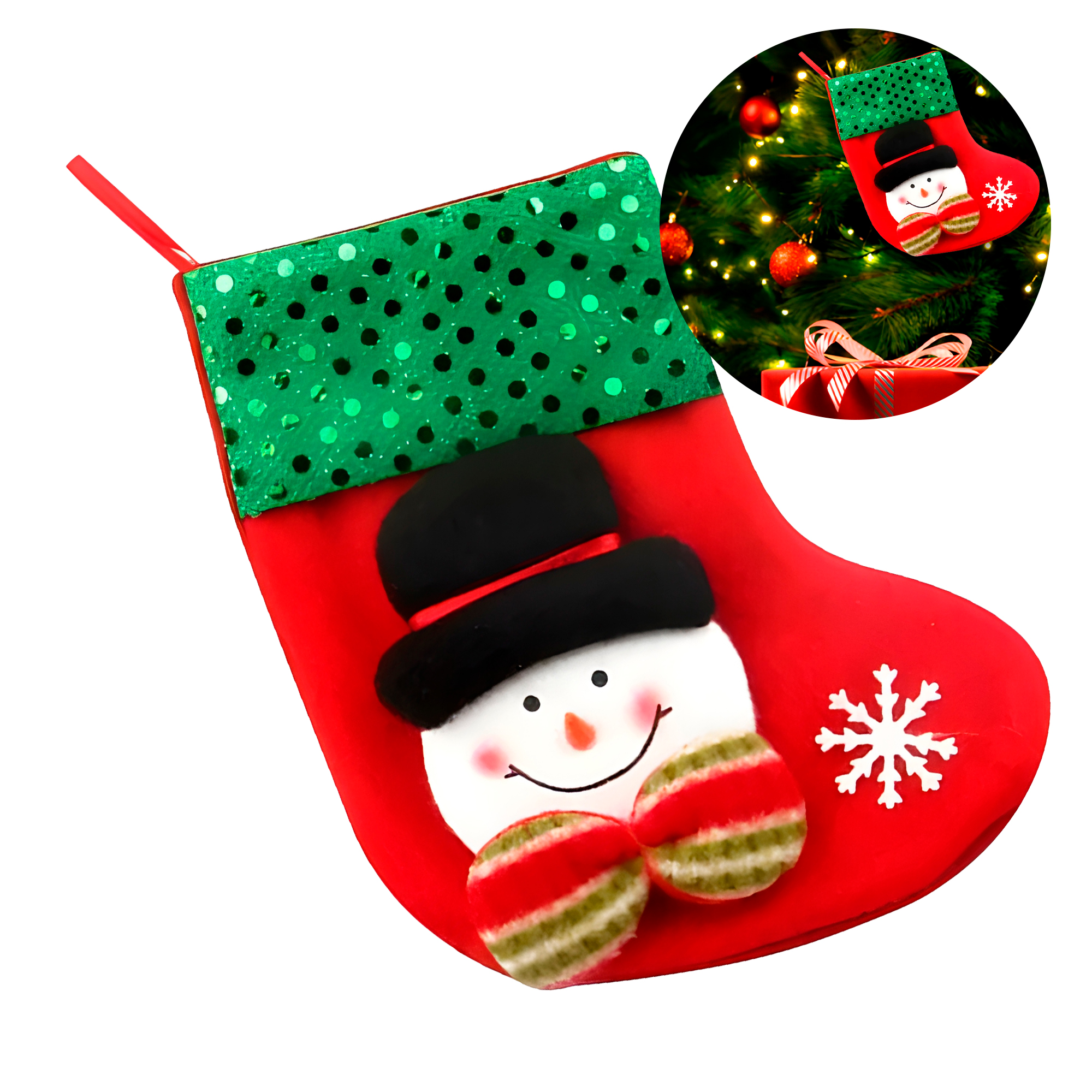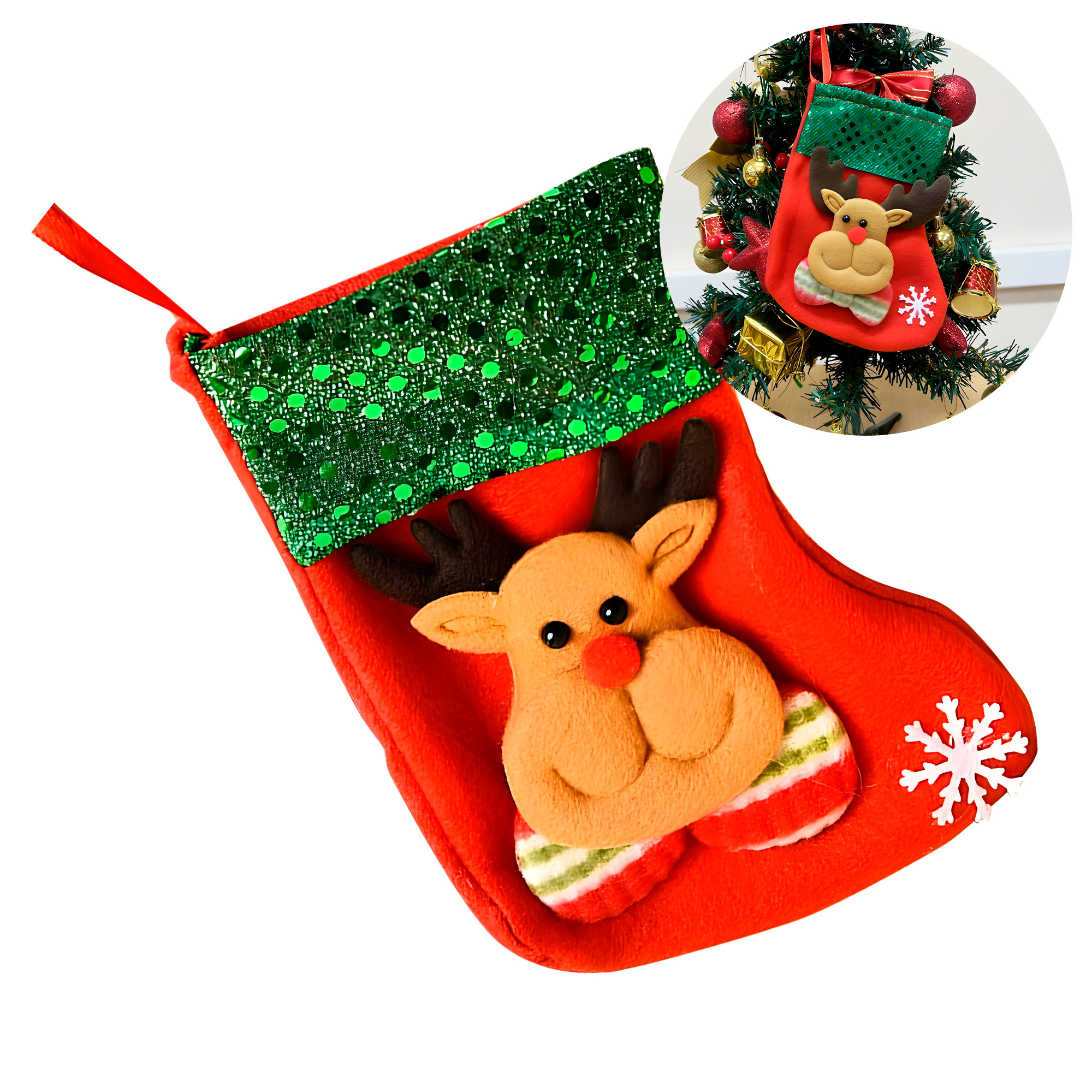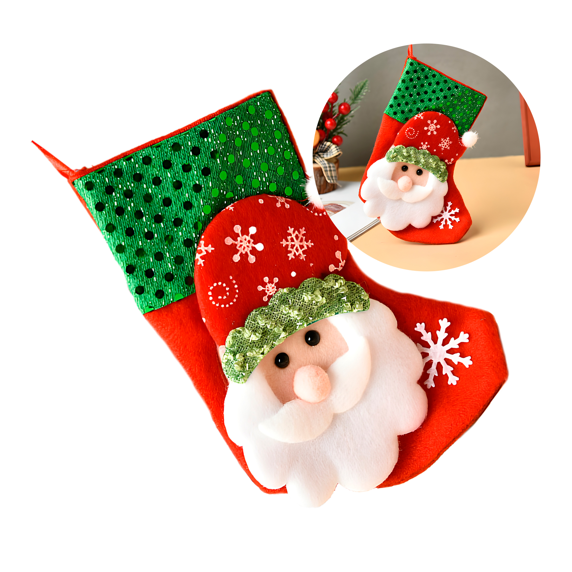 Ideal para llenar de magia los días festivos, estos calcetines navideños combinan funcionalidad con un diseño encantador. Gracias a su amplia abertura superior y espacio interior generoso, es perfecto para guardar desde pequeños obsequios hasta dulces, juguetes, accesorios o detalles especiales. Es una opción práctica y decorativa que no puede faltar en la temporada.