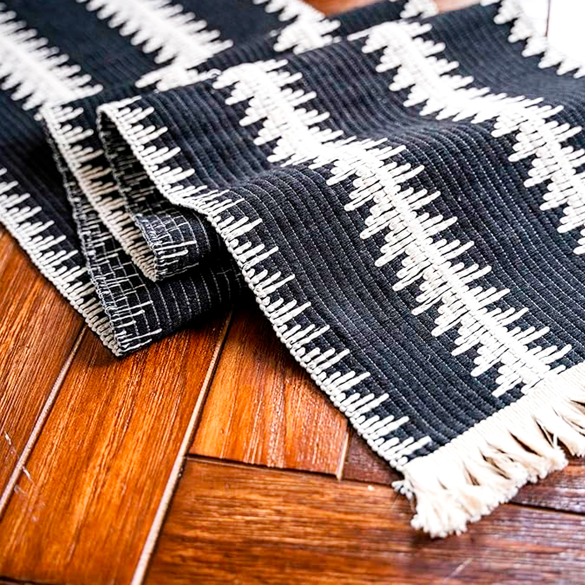 Camino de mesa de algodón y yute etnico con diseños únicos que darán un toque especial a cualquier espacio, ideales para mesas grandes o pequeñas y perfectos para reuniones, cenas especiales o simplemente para darle un aire nuevo a tu hogar