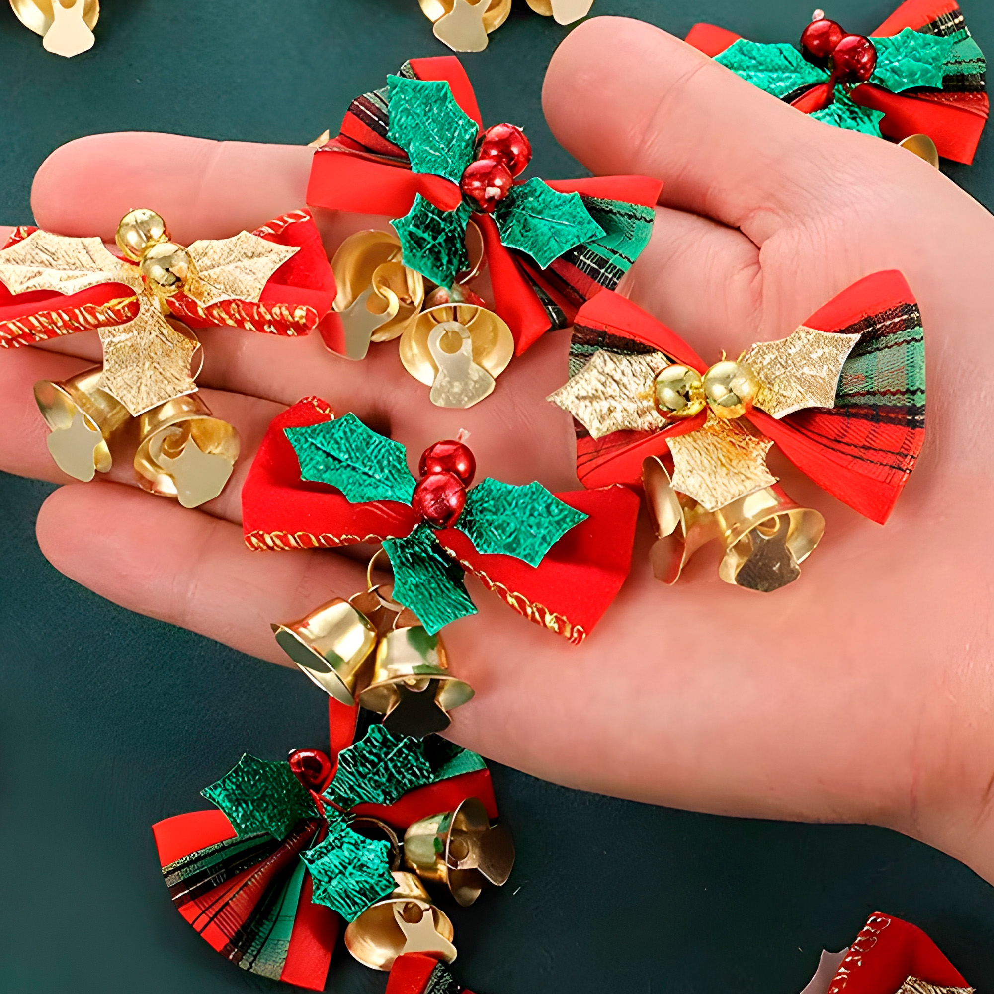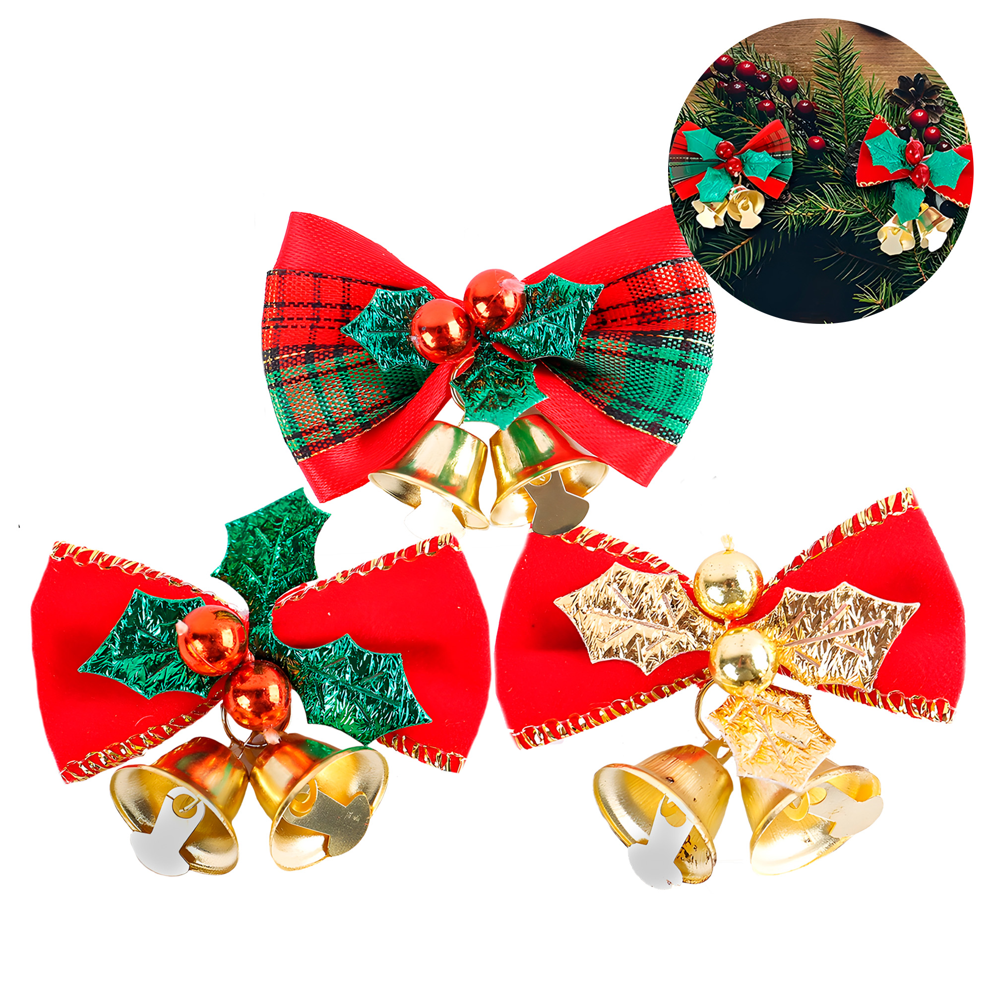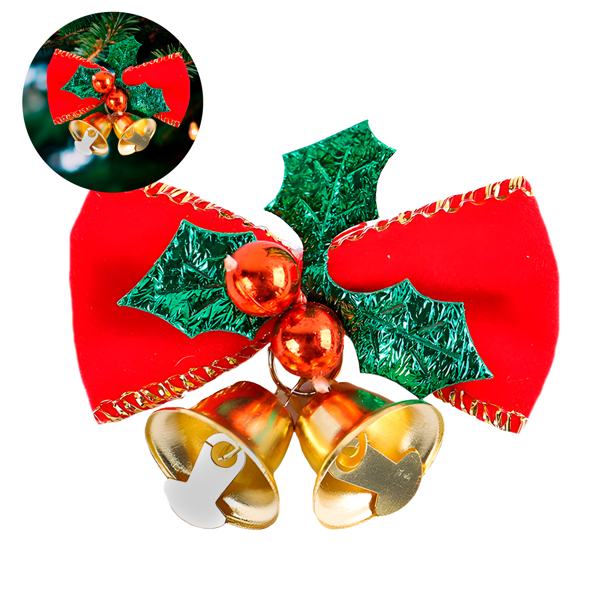 Aporta un toque especial a tu decoración navideña con estos encantadores adornos compuestos por lazos decorativos combinados con pequeñas campanas. Su diseño innovador mezcla elegancia y alegría festiva, logrando una presentación encantadora y diferente.