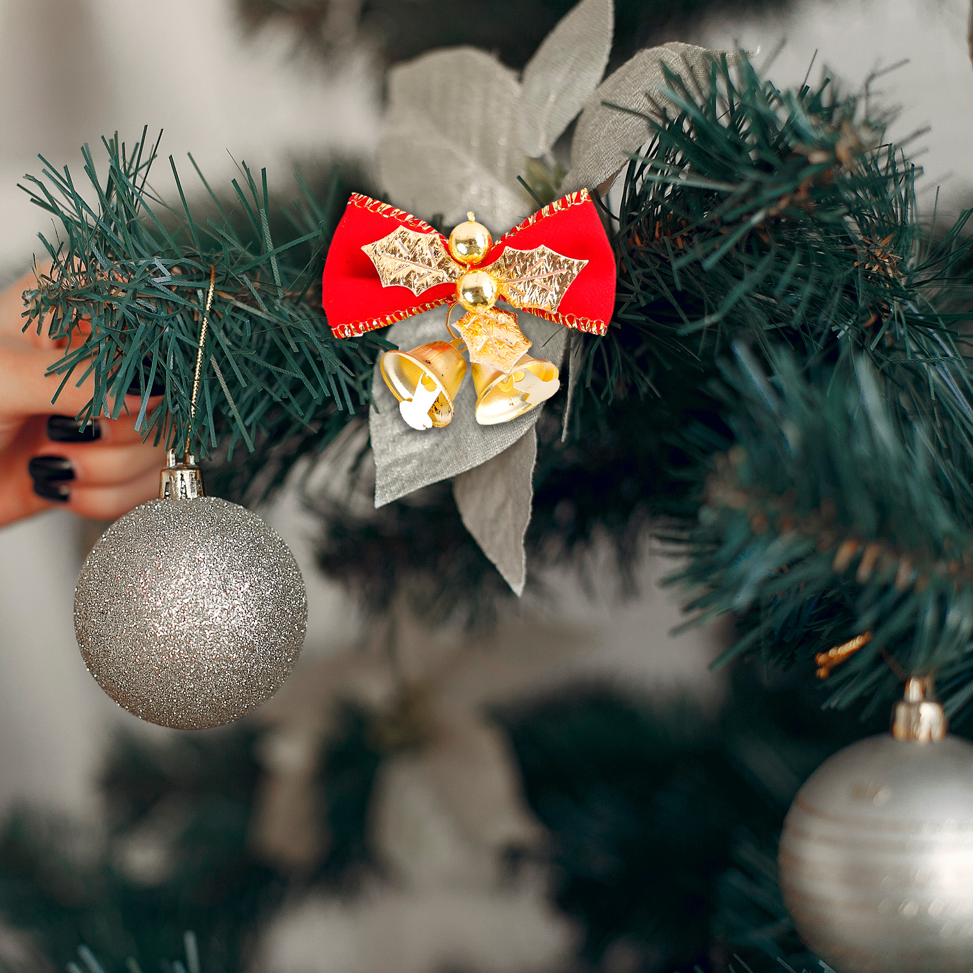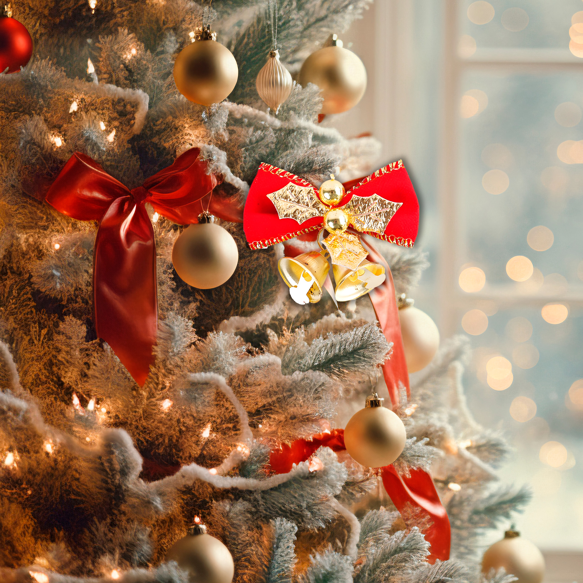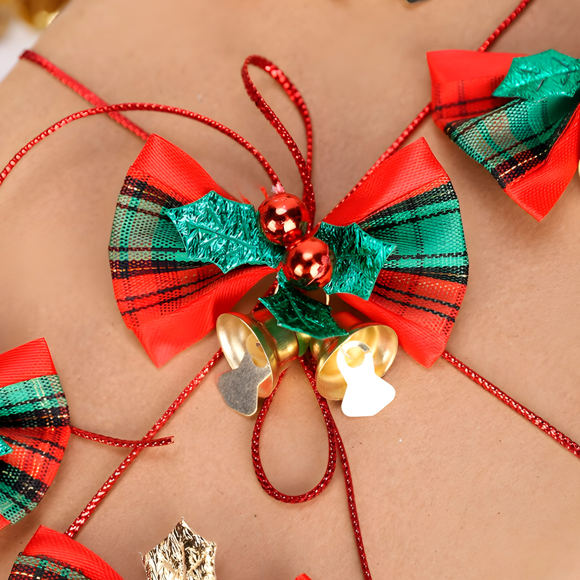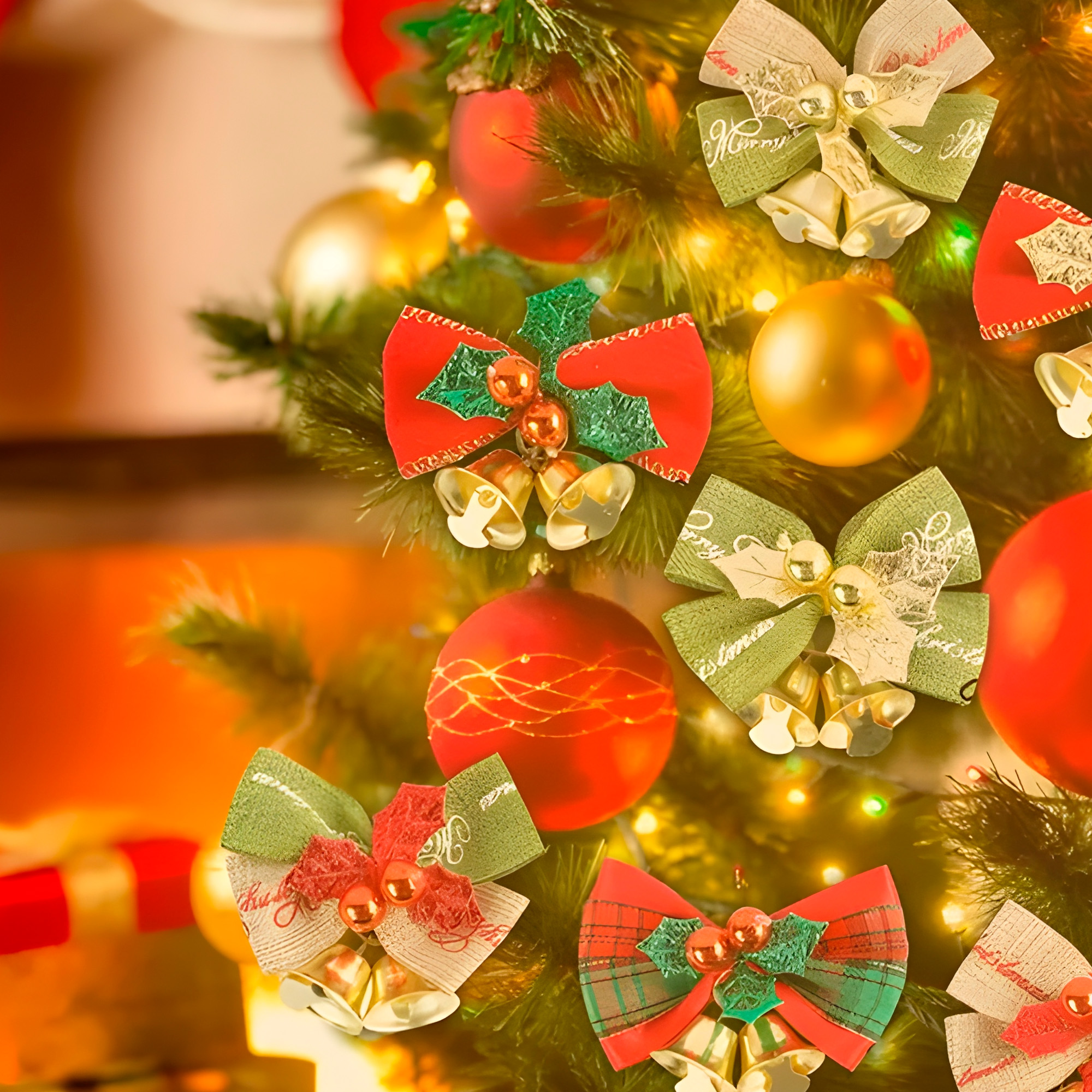 Aporta un toque especial a tu decoración navideña con estos encantadores adornos compuestos por lazos decorativos combinados con pequeñas campanas. Su diseño innovador mezcla elegancia y alegría festiva, logrando una presentación encantadora y diferente.