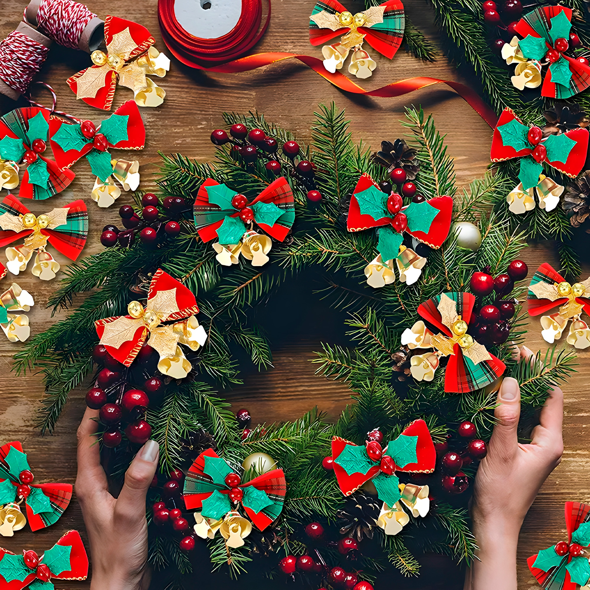 Estos lazos no solo son ideales para decorar el árbol, sino también para añadir un detalle festivo en envoltorios de regalos, como accesorios para bufandas o incluso en peinados navideños. Son adornos funcionales que aportan un toque de glamour en cualquier celebración.