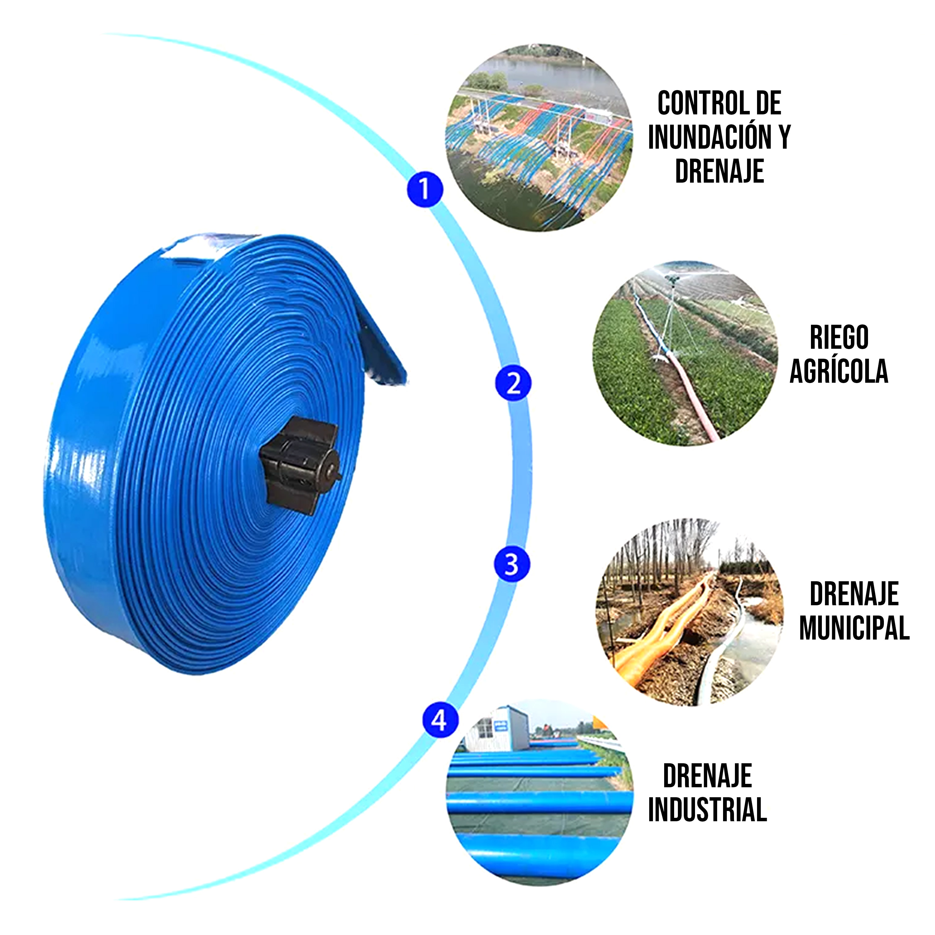 Manguera Plana Lay Flat Para Riego 2 Pulgadas Rollo De 50 Metros