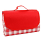 Práctica alfombra impermeable para picnic doblada de tal forma que queda con el aspecto de un pequeño bolso de mano ideal para una salida al aire libre y pasar un tiempo agradable junto a su familia o amigos y disfrutar de la naturaleza.
