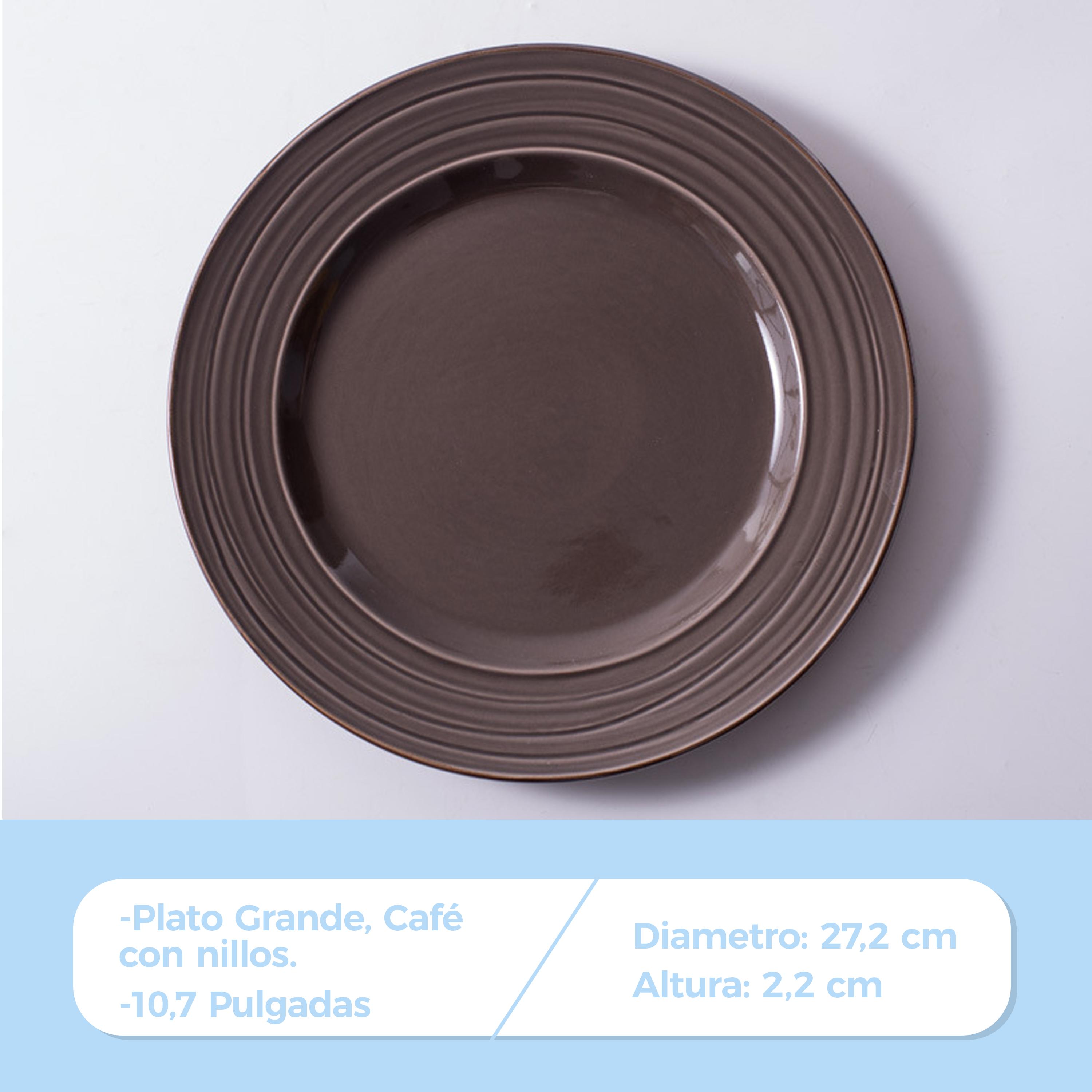 Plato Bajo Grande Cerámica Con Líneas Circulares 27.2cm