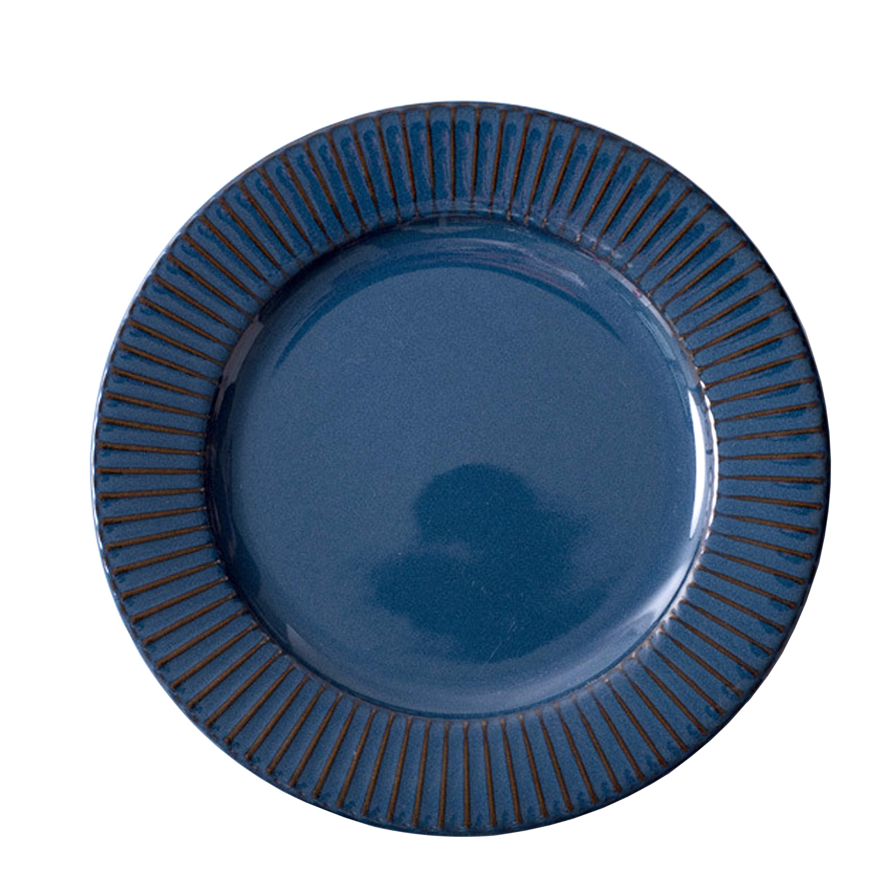 Plato Llano De Fondo Cerámica Azul Borde Líneas 21.3cm