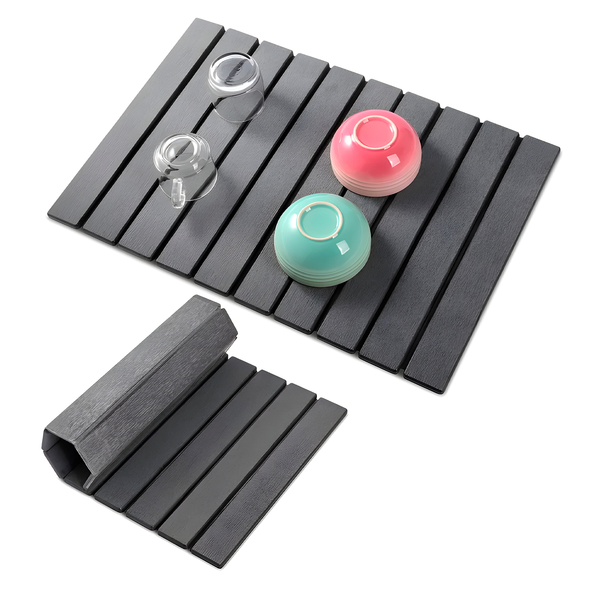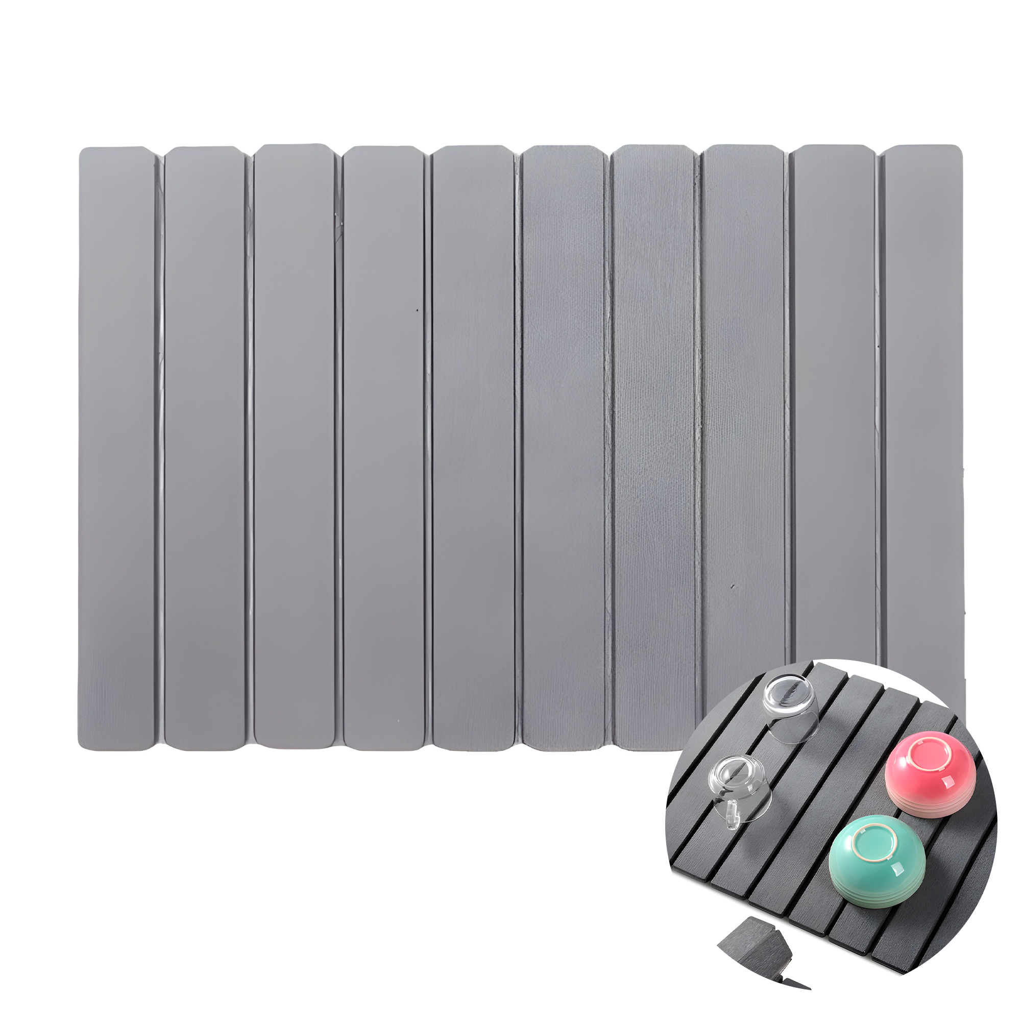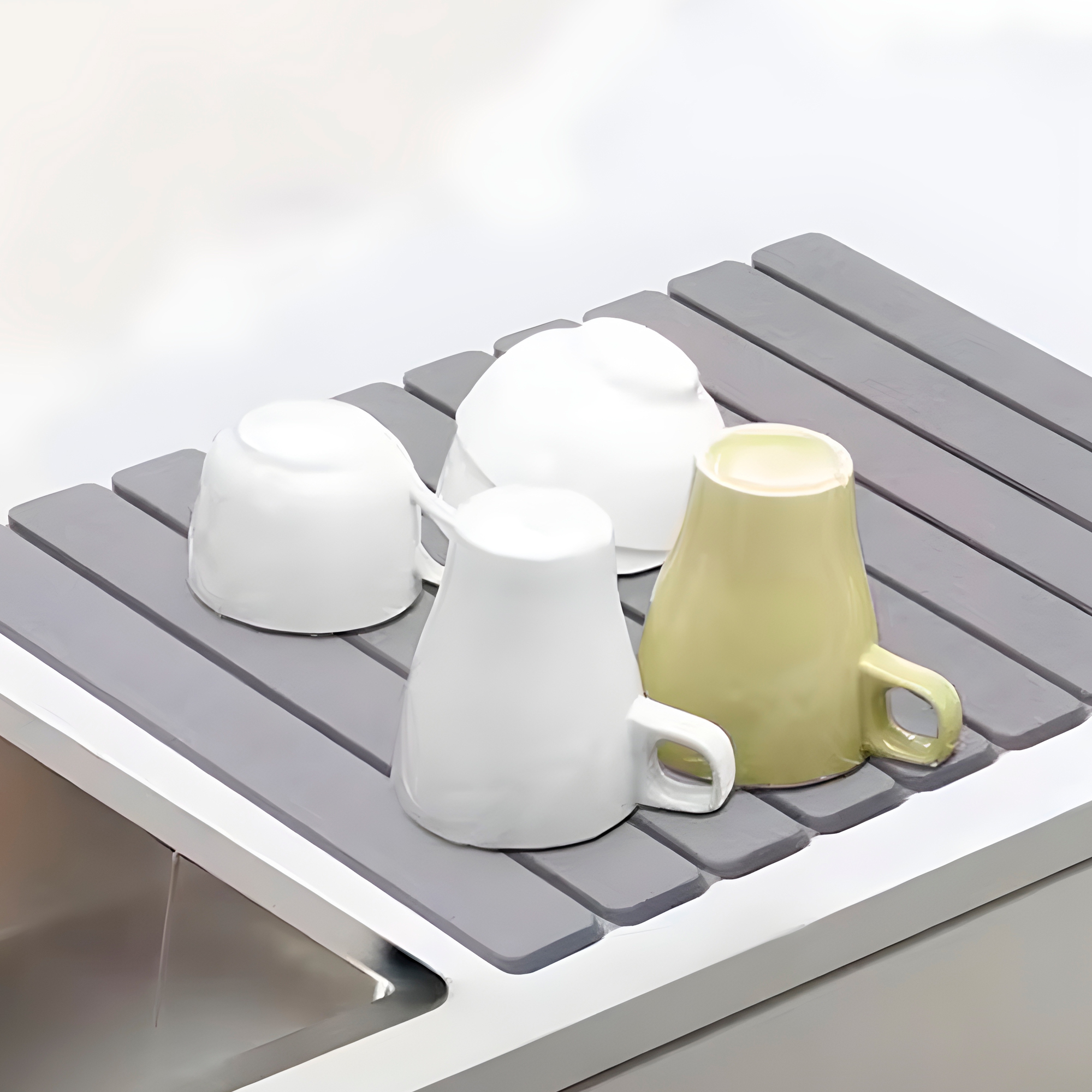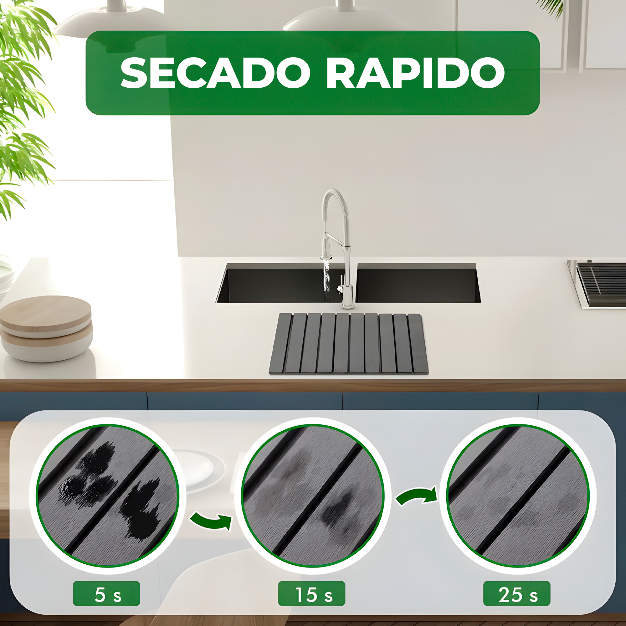 Absorción ultra rápida: la diatomita puede absorber hasta un 150 % o más de su propio peso en agua y evaporarla en minutos, manteniendo la superficie completamente seca y libre de charcos. Ideal para platos, vasos y cubiertos recién lavados.