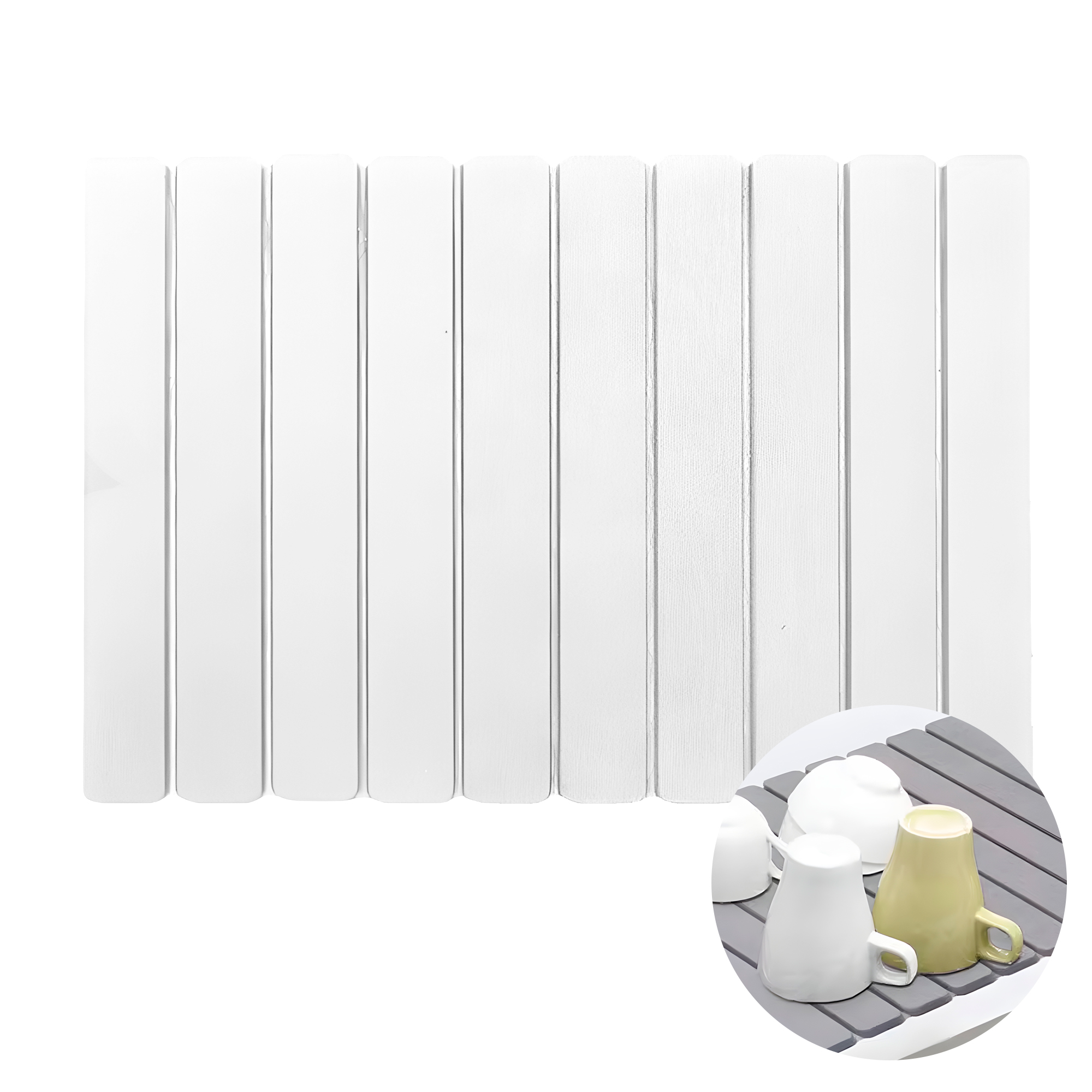 Este práctico escurridor de lozas, absorbente especialmente diseñada para secar utensilios de cocina. Está hecho de diatomita, un material natural con asombrosa capacidad de absorción y secado rápido.